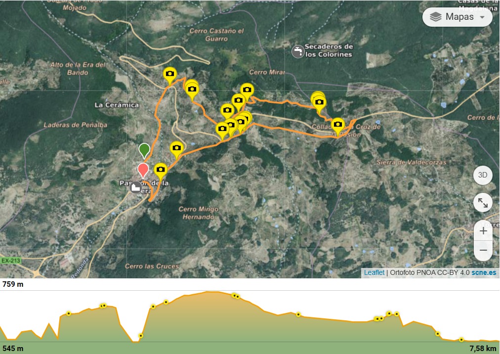 Una ruta de unos 7,5 km. donde combina parte de camino y asfalto, con dirección este/oeste, donde podrás disfrutar de vistas al Valle del Tiétar y paseo por zonas de cerezos, olivos, y robles.